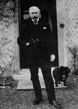 John Blackwood, chairman of the Craigton Bleachworks until 1912, standing outside Craigton Works House, Milngavie.