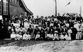 Group of tenants and Sir John and Lady Stirling-Maxwell at the Flower show on 5th September 1914 celebrating the opening of hall in August 1914.