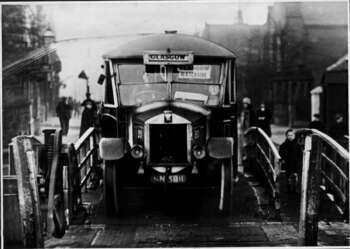 Lawson's Albion No.20 of 1926 crossing Townhead Bridge, Kirkintilloch, on Glasgow-Torrance-Waterside service, c.1930. The bridge was in very poor condition by this date.