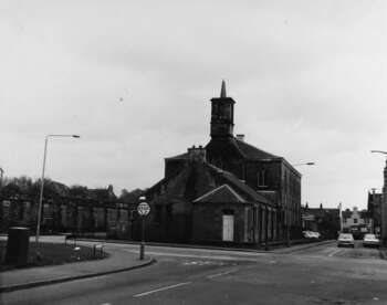 St. David's Ledgate Church, Eastside, Kirkintilloch gets its name from "Bailie" David Gemmill who served in the burgh from 1826-1830. He laid the foundation stone for the church in his own garden. Built as an extension to the Parish Church, the congregation was formed in 1836, the church cost £2,500 and seated 1012 worshipers. The Disruption of 1843 saw massive change for St. David's Ledgate. The split of the kirk, due to disputes with the government over its involvement with church decisions, left Scotland with two national churches -The Church of Scotland and The Free Church of Scotland. By 1845 the majority of St. David's congregation had left to 'go out into the fields' to form the free church, as a result St. David's Ledgate was shut up for eight years. It re-opened in 1851 as a mission station and was later returned to the status of chapel in 1853. The church still stands today although it is no longer used for religious purposes. Photograph taken June 1978.