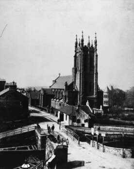 St. Mary's Parish Church, situated close to Townhead Bridge, Kirkintilloch, is a Gothic style, cruciform shaped building of red sandstone. It is 120 feet to its topmost spire and its frontage to the Cowgate is 144 feet in length. The church seats 1,212 worshipers. It was built to replace St. Mary's at the cross (also known as the Auld Kirk) as it had become too small to accommodate its growing congregation. The architect chosen to design the church was George Bell Jnr of Clerk & Bell, Glasgow. Work began in 1912 and the building was completed in 1914. The memorial stone was laid on 8th August 1913 with the Grand Master Mason of Scotland, the Most Honorable Marquess of Tullibardine officiating at the ceremony. The church was dedicated on 12th September 1914 as Kirkintilloch Parish Church, the name St. Mary's could not be used as the Auld Kirk at the cross still held the name. It wasn't until 1941 that the name was eventually changed to St. Mary's after the Auld Kirk ceased to be used as a religious building.