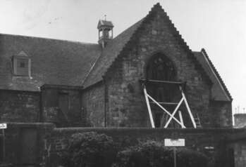 Old St. Mary's Parish Church, during renovation as a museum. The church, also known as the 'Auld Kirk', was transferred to Kirkintilloch Town Council by the General Trustees in 1942. Restoration was completed in the early 1960s and the building was opened as a museum in 1961.