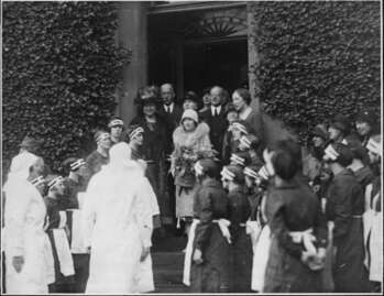 Elizabeth, Duchess of York, at the opening of Millersneuk House for training of domestic workers. 6th October 1929.