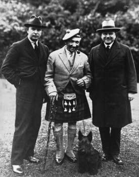 Members of Chapman family at Johnston Farm with Sir Harry Lauder and champion dog 'Champion Heather Realisation'. There is a small collection relating to the Chapman family of Gartcosh at North Lanarkshire Archives.