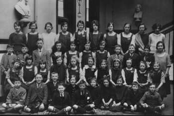 Lenzie Academy. Music teacher Lilias D. Honeyman, with music students of various ages, c.1926.