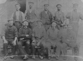 Cadder Colliery group of workers (Mr Robert Morrison, winding-engineman at Cadder No. 17, second from left in front row).
