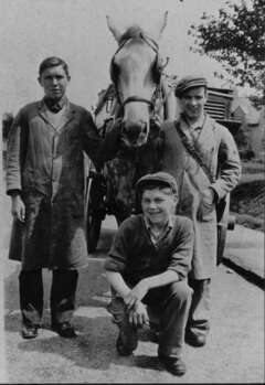 Kirkintilloch Equitable Co-operative Society. Bakers van in Kirksyde Avenue, c.1937. (Left to right: Malcolm Brown, John Gallagher, Neil Cairney).