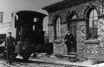 Shunting locomotive, Heathfield and Cardowan Fireclay Works with George Cleland, Works Manager, on right. The Cleland family papers are held by EDLC Archives - reference GD100 https://collections.edlc.co.uk/Details/archive/110017144