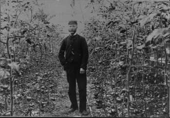 Mr. Winning, an early tomato grower, in his greenhouse at Kilnrigg, Balmore.