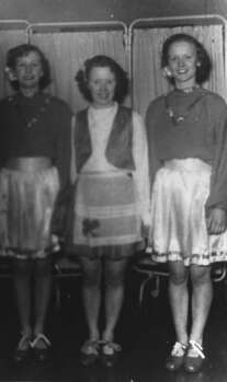 'War Effort' concert party at Robroyston Hospital: the Gallacher sisters, Greta Gallacher on the right, with Susan McCormick, centre.