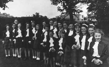 Kirkintilloch Junior Choir. "New uniforms" on display in St. Andrew's Manse Garden, c. 1939.