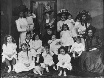 Women and children of the Cameron family of Lenzie, c.1911. Although typical of Lenzie residents the Cameron's business interests were in Kirkintilloch, at South Bank Iron Works. The Cameron's family home was at Blair Villa, Garngaber Avenue, which dated from 1856. It was one of the original 'villa ticket' houses, for which free travel to Glasgow had been granted to the original resident.