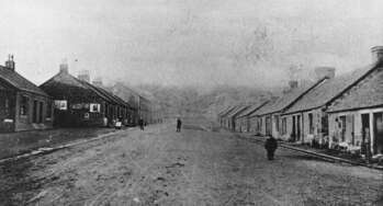 Row of miners' cottages at Mavis Valley, Bishopbriggs. The houses were built from 1855 onwards and had very primitive facilities.
